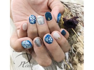 派手なお色に出来ない方も、シェルや箔をのせると一気に夏ネイルになりますので、
