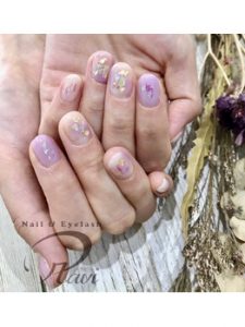 カラーをホワイトとパステルパープルで、ふんわり柔らかいネイルに仕上げました☆