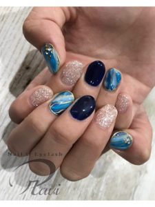 ネイビーカラーで引き締めてクールなネイルに仕上げました☆