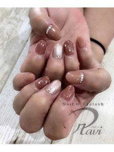 パールカラーをポイントに入れて、暗くなりすぎない上品ネイルに仕上げました☆